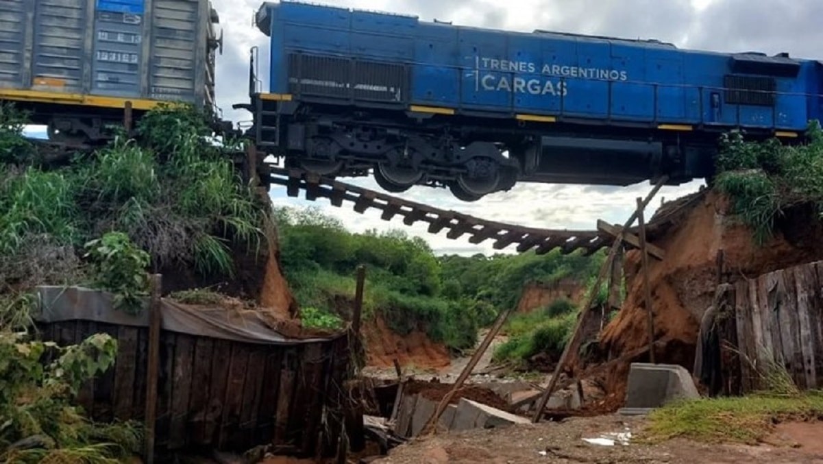 SALTA – Las imágenes son impactantes. Es que la formación del Belgrano Cargas había partido desde Metán rumbo a San Miguel de Tucumán. Antes de llegar a destino, se quedó varado en Rosario de la Frontera. En la sección de Horcones del ramal línea C el puente literalmente quedó suspendido en el aire.